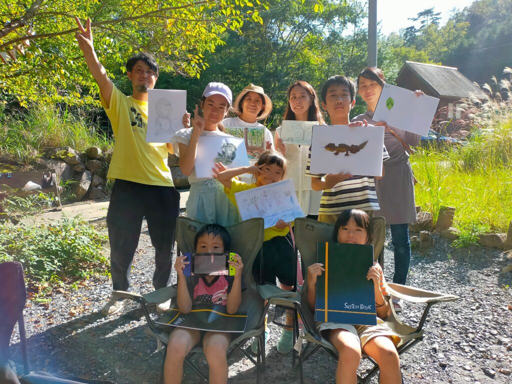 2022年、10月、この自習室を作るにあたり、子どものことを全く知らない!ということで、友人家族にご協力いただき、親子で参加できる写生会を行いました。場所はるり渓にある、フレアキャビンさんをお借りしました。