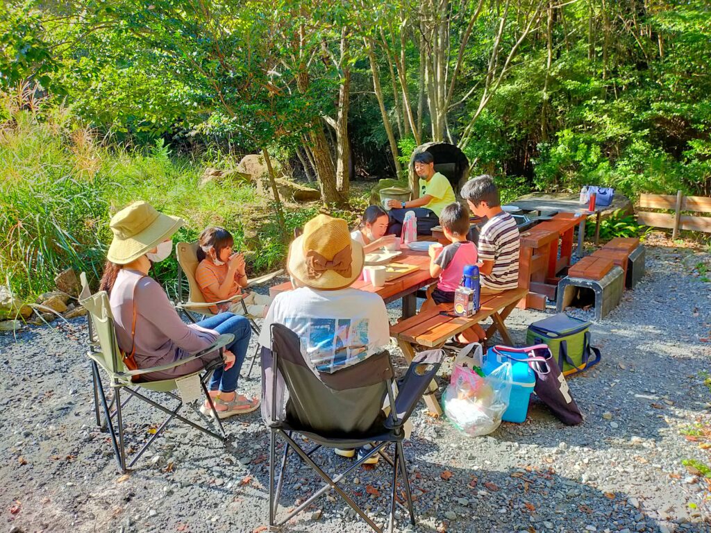 子どもたちは10月なのに川に入ったり・・・自然と戯れました。